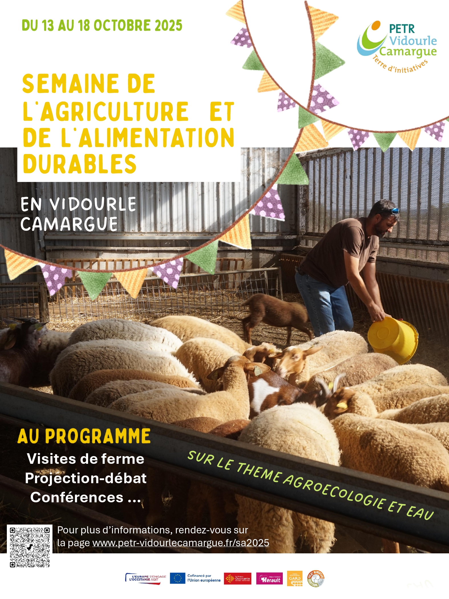 Du 13 au 18 octobre 2025, le PETR Vidourle Camargue et ses intercommunalités organisent une nouvelle édition de la Semaine de l’agriculture et de l’alimentation durables. Cet événement, inscrit dans le Projet Alimentaire Territorial (PAT), vise à sensibiliser petits et grands aux enjeux d’une alimentation plus saine, locale et respectueuse de l’environnement.