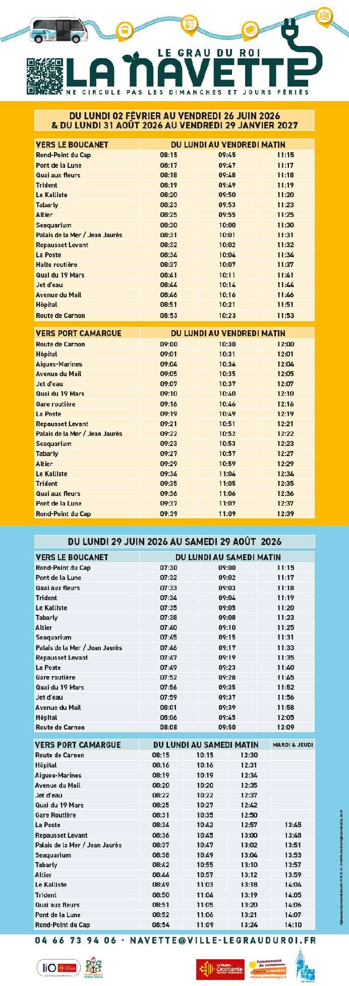 Navette du Grau-du-Roi (fiche horaires à compter du 02 février 2026)