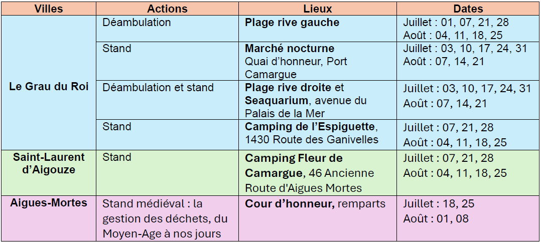 La brigade des ambassadeurs du tri est présente tous les jours en juillet et en août dans les trois villes du territoire, sur les plages, les marchés nocturnes, les campings et les événements locaux.